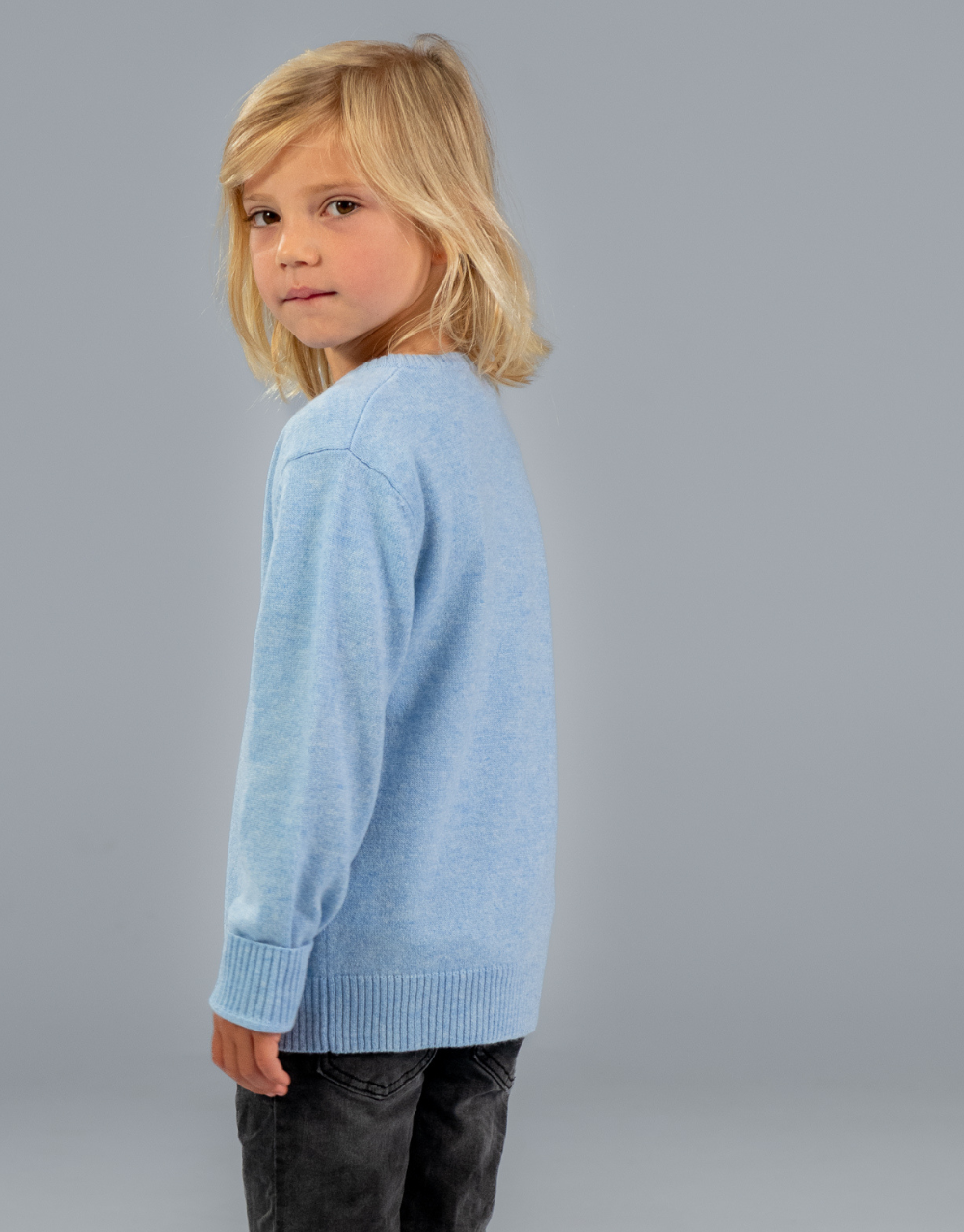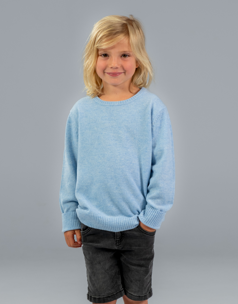 Boys round neck pullover. 2-ply, flat-knit. 100% cashmere.
