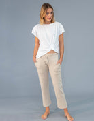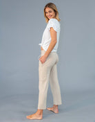 Straight cut pants, 2-ply, flat knit. 100% un-dyed cashmere.