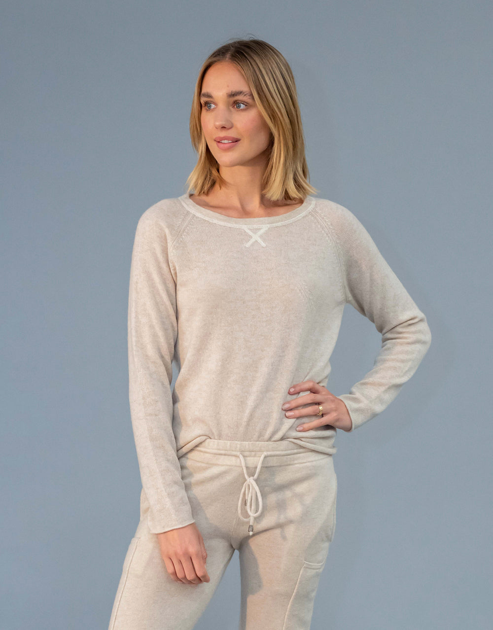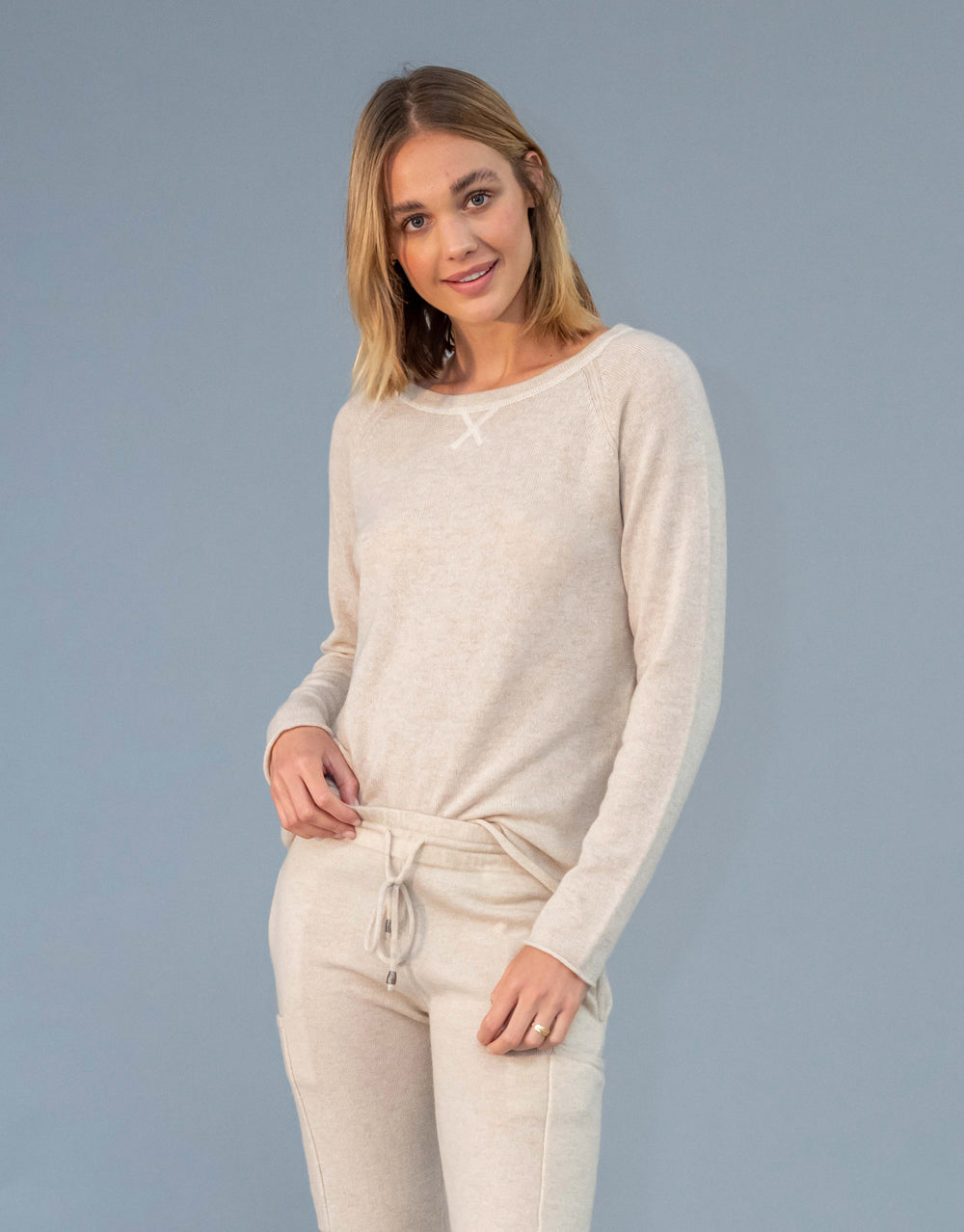 A feather-light soft sweater that is made from the most natural, softest cashmere. Lounge all day and night in this luxury cashmere jumper, complete the look and get the full set with the un-dyed cashmere pants.