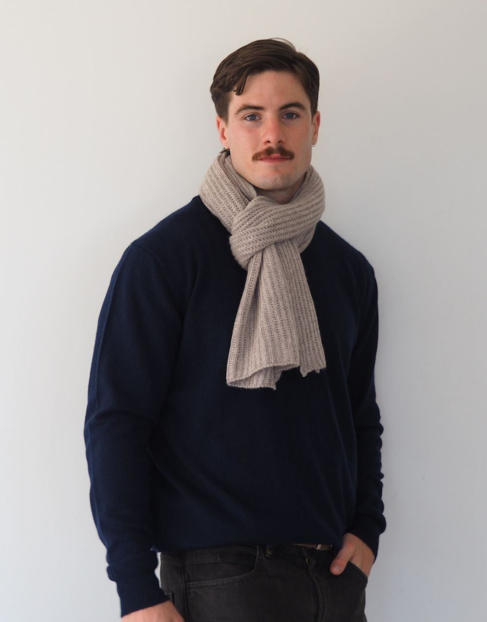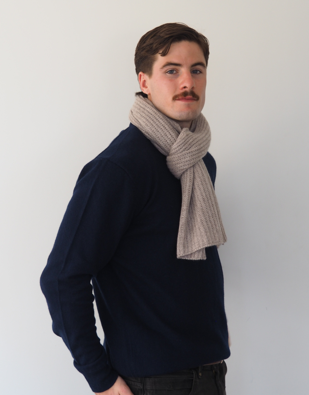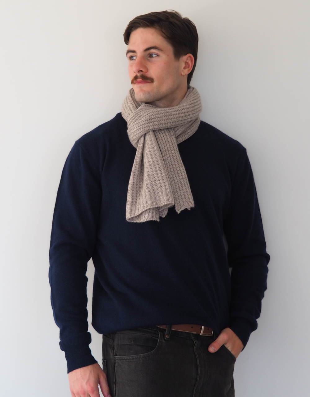 Thick Ribbed Cashmere Short Scarf in Oak