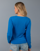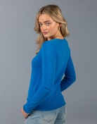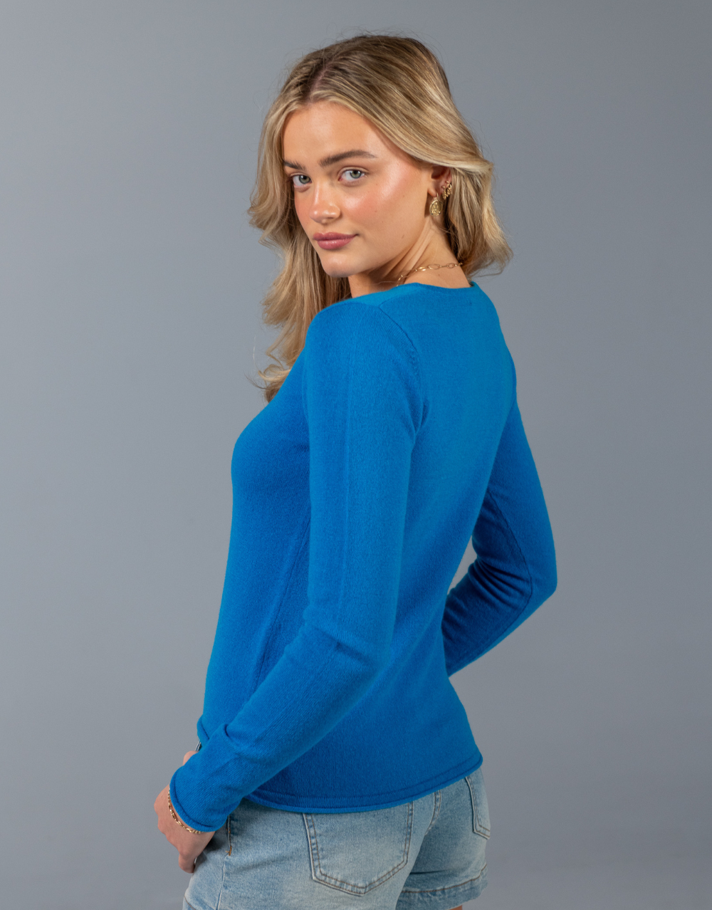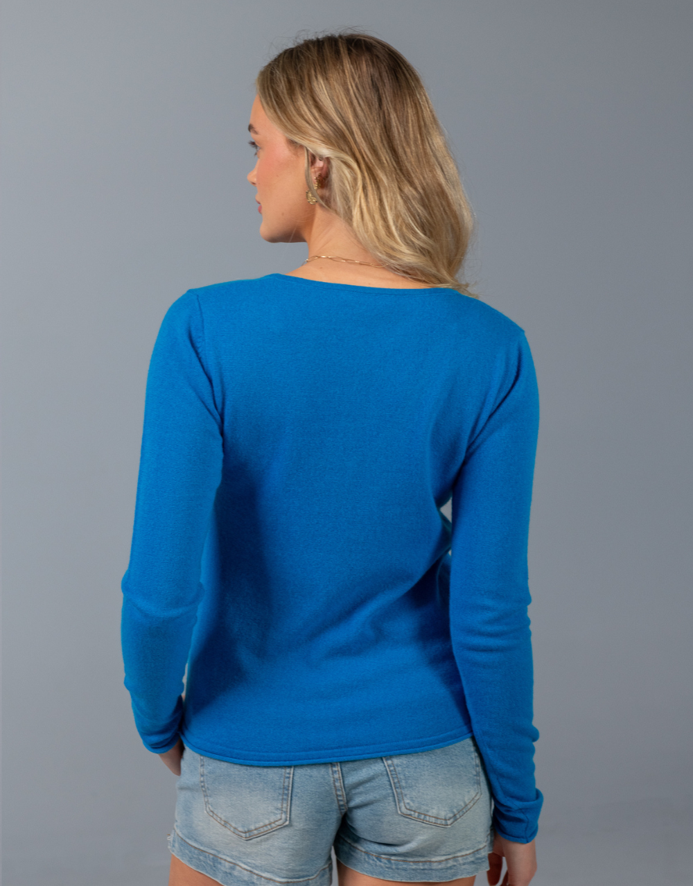Long-sleeved v-neck everyday sweater in cosy soft cashmere. The perfect add-on to your cosy wardrobe, wear as a base for layering on chilly days or over shorts on warmer days.
