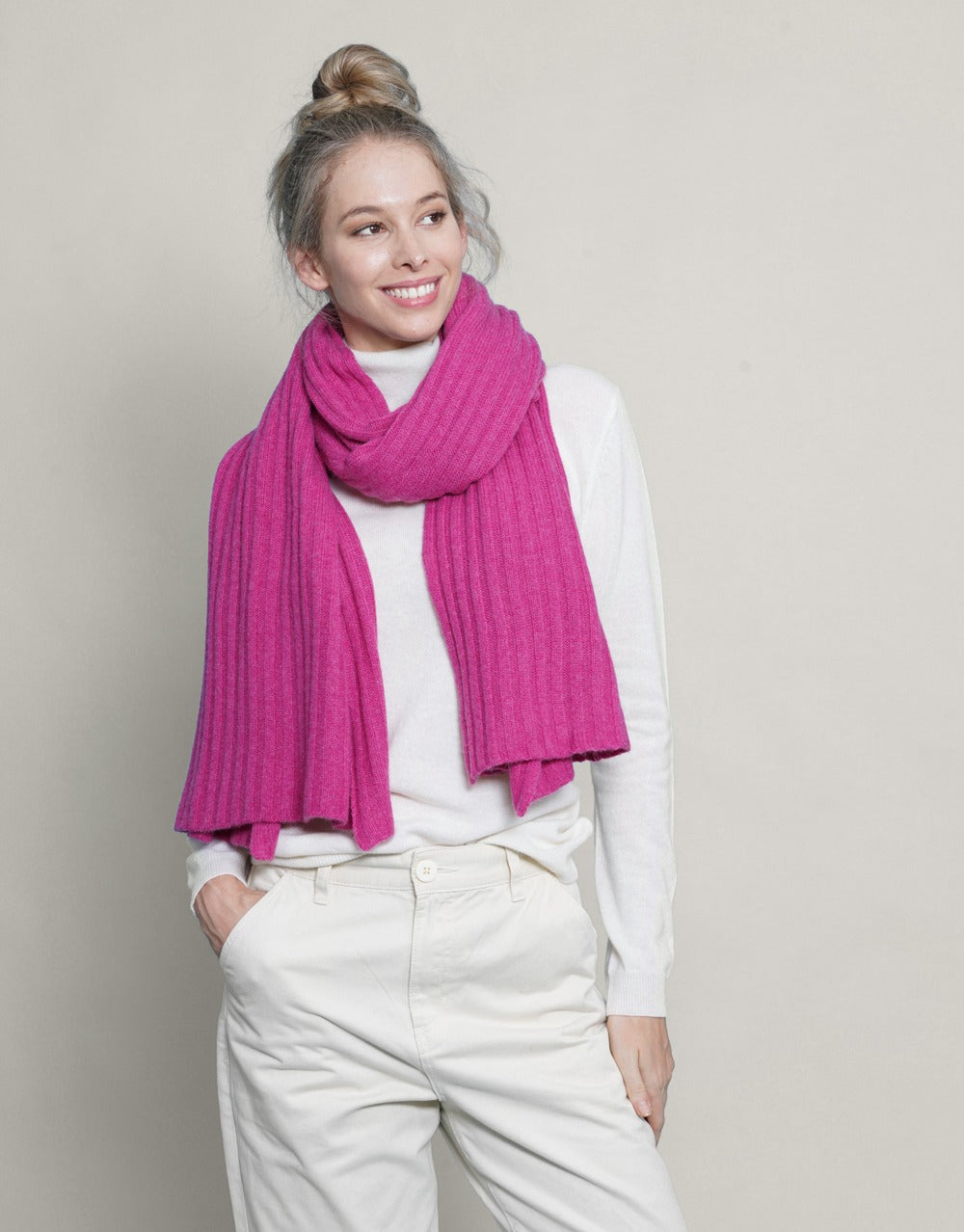 4-ply 3x3 rib knit. 100% cashmere.