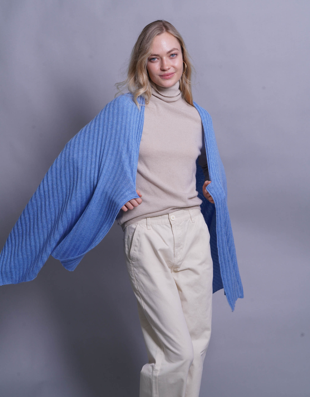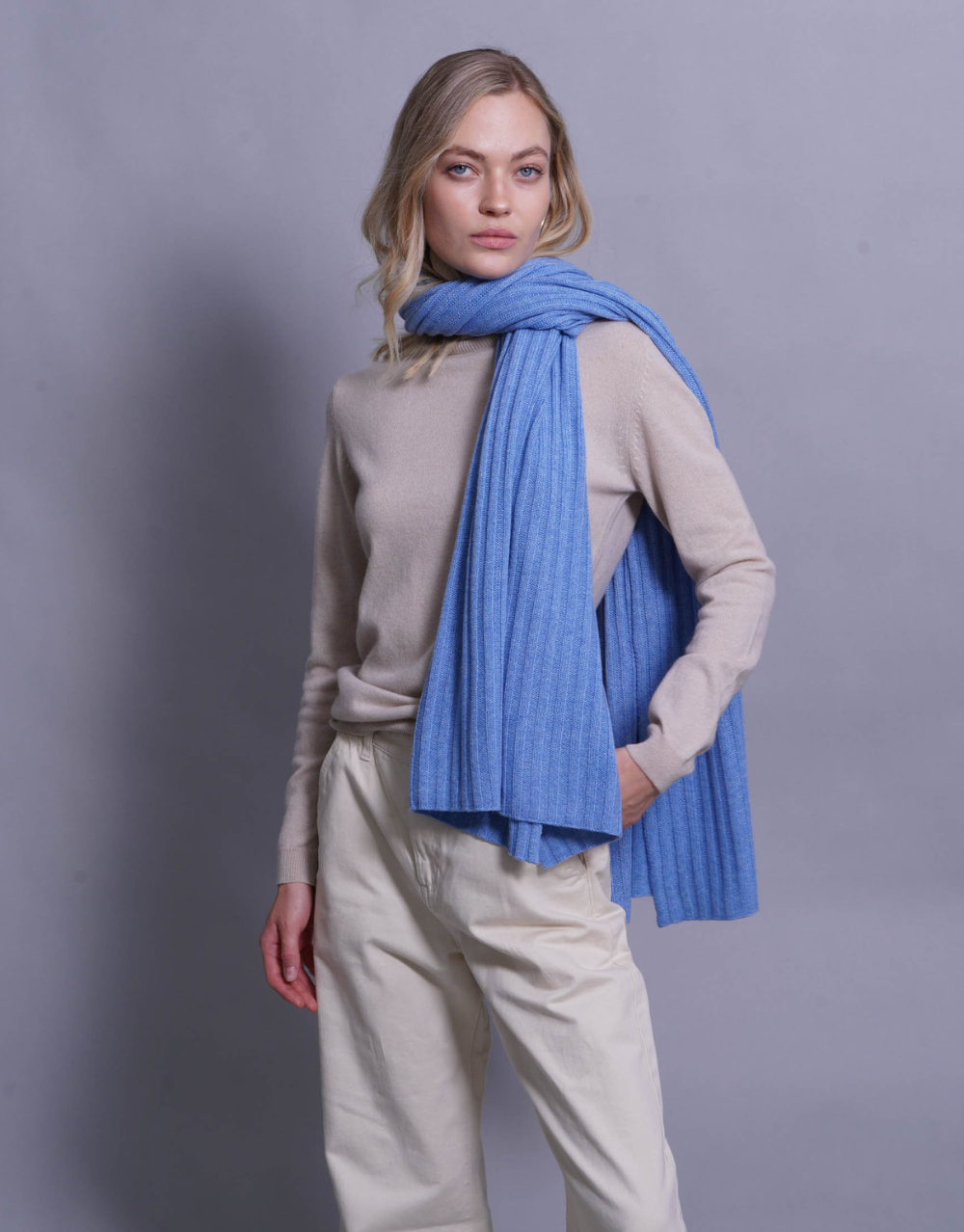This luxurious and gorgeous piece can be a wrap, blanket, or a thick scarf. A beautiful warm and cozy rib plaid cashmere scarf you'll love for years. Layer your winter wardrobe with this timeless and elegant knit scarf.