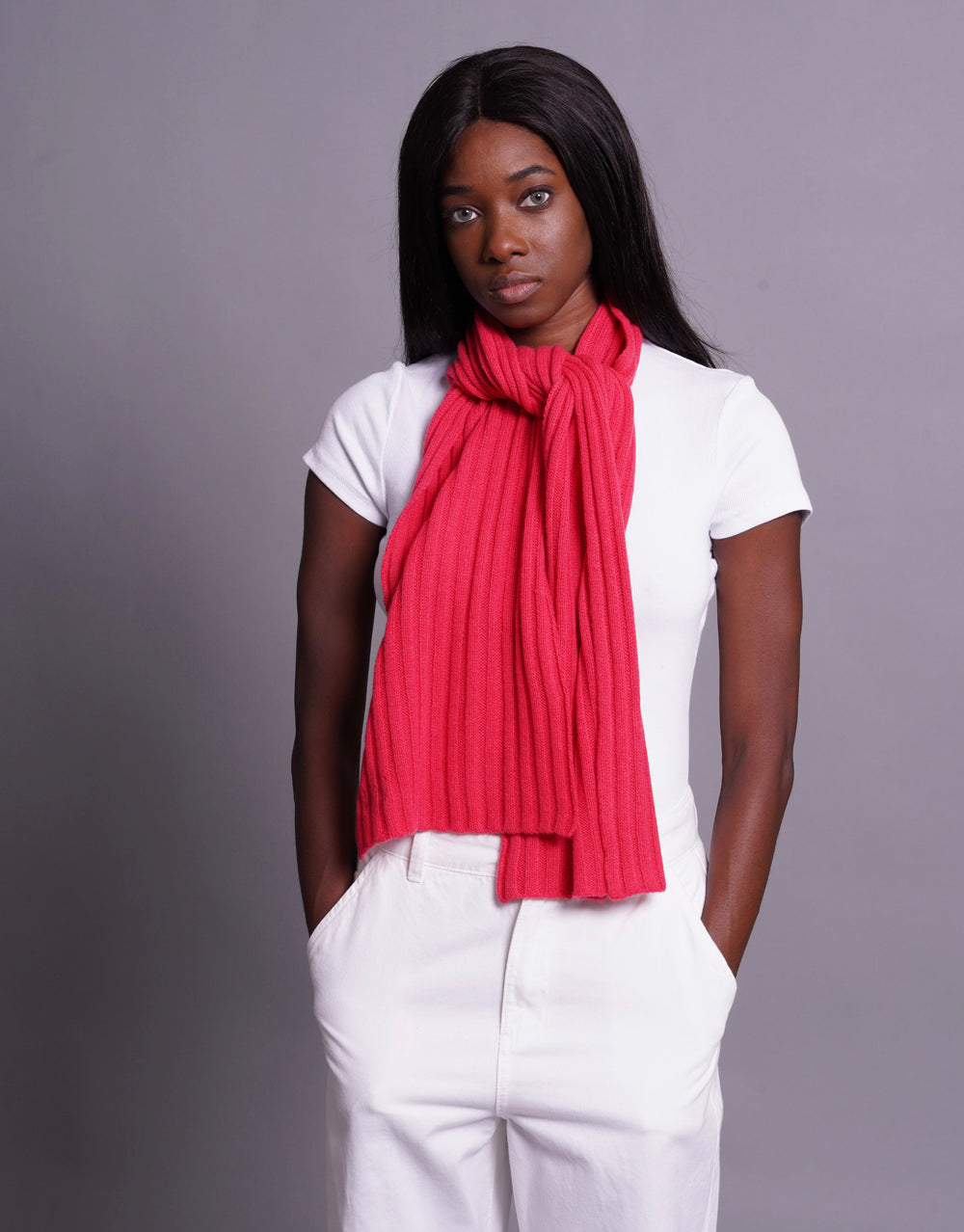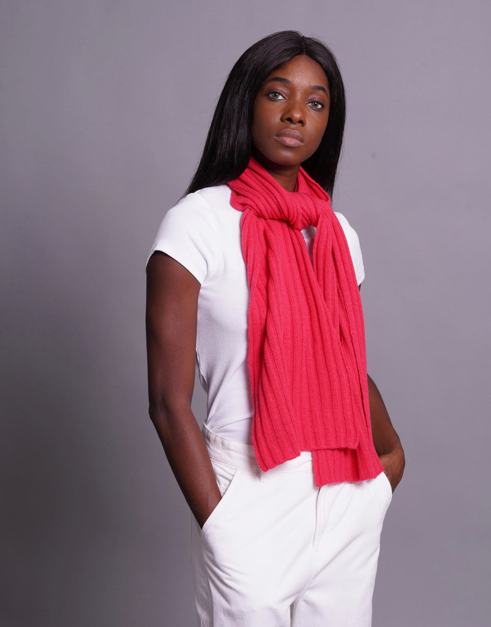 Loose knit 3x3 rib scarf, 4-ply. 100% cashmere. One size.