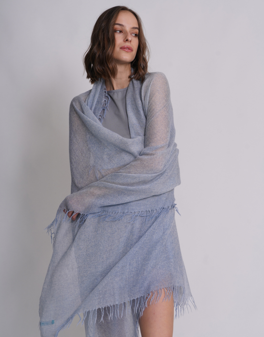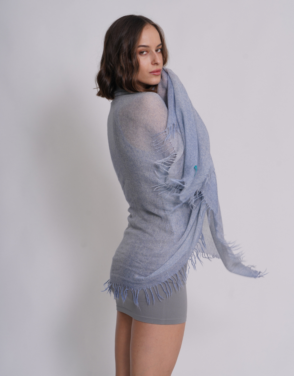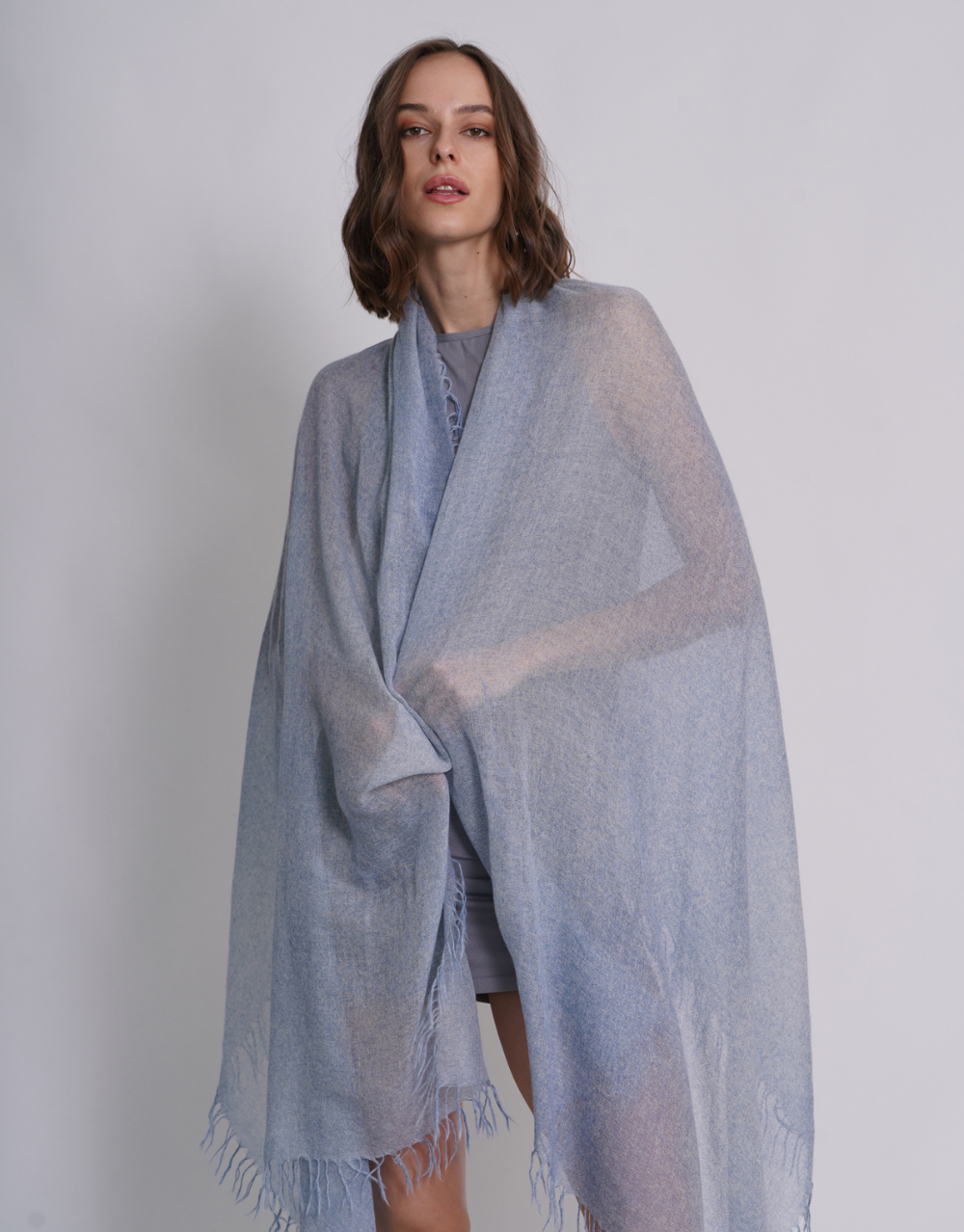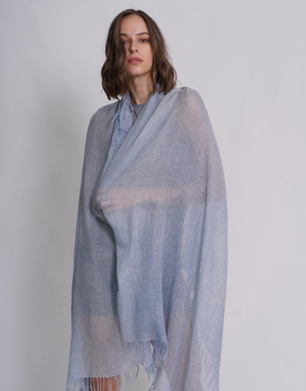 Woven Fringed Scarf in Washed Bleu