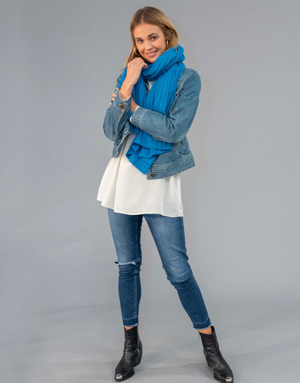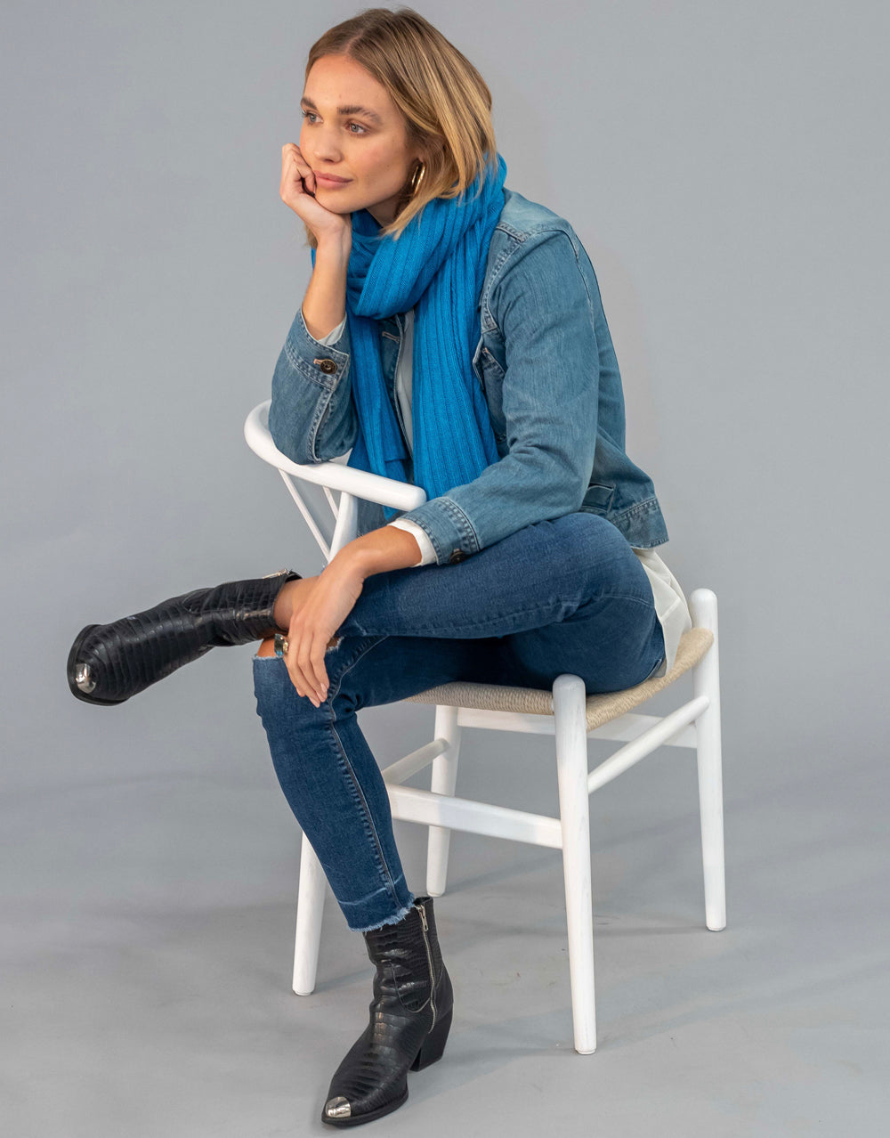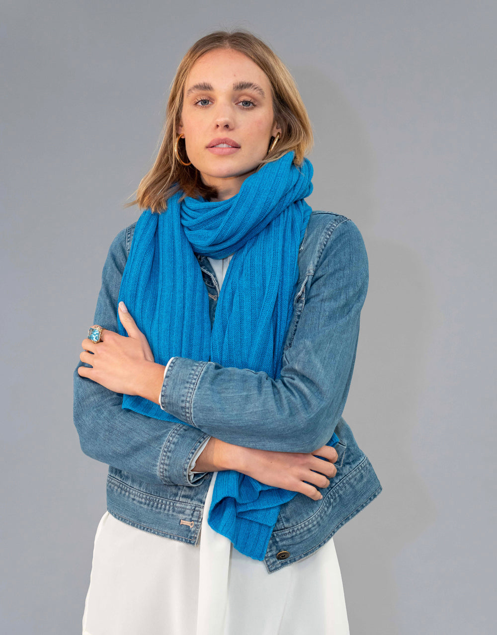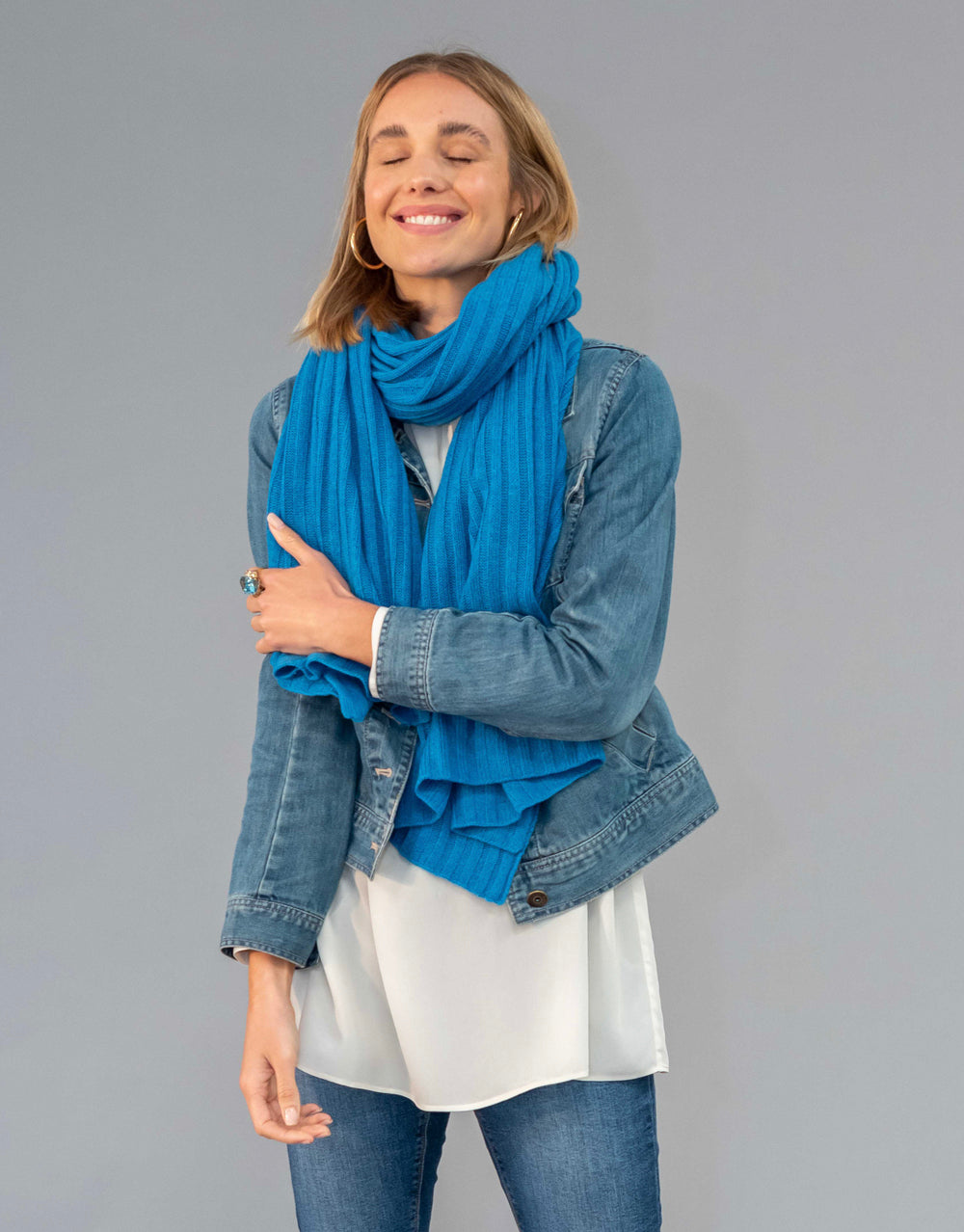 Luxury Rib Plaid Scarf in Azul
