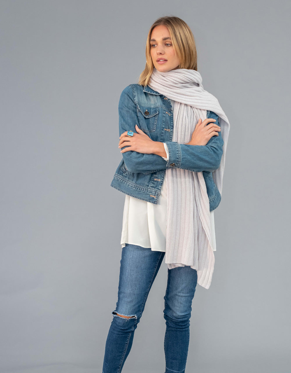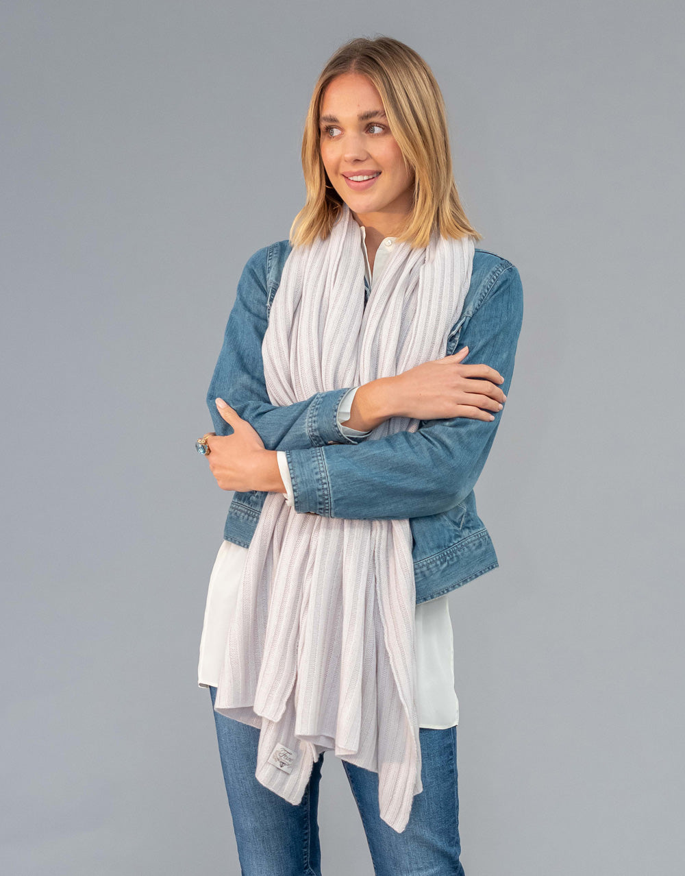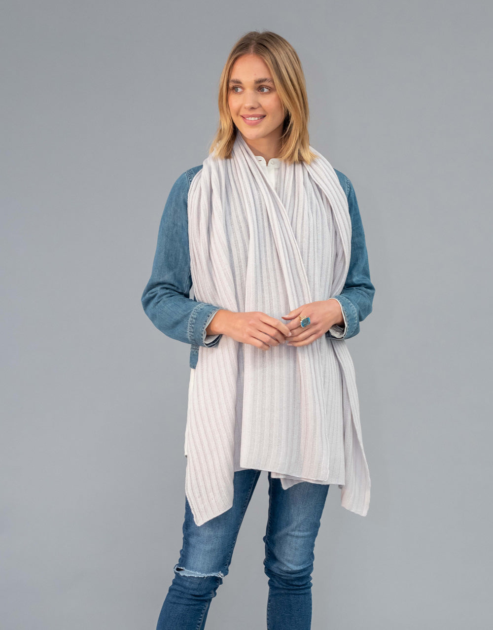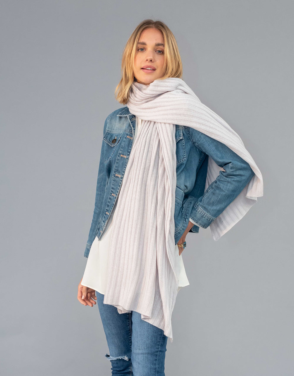 Luxury Rib Plaid Scarf in Dirty White