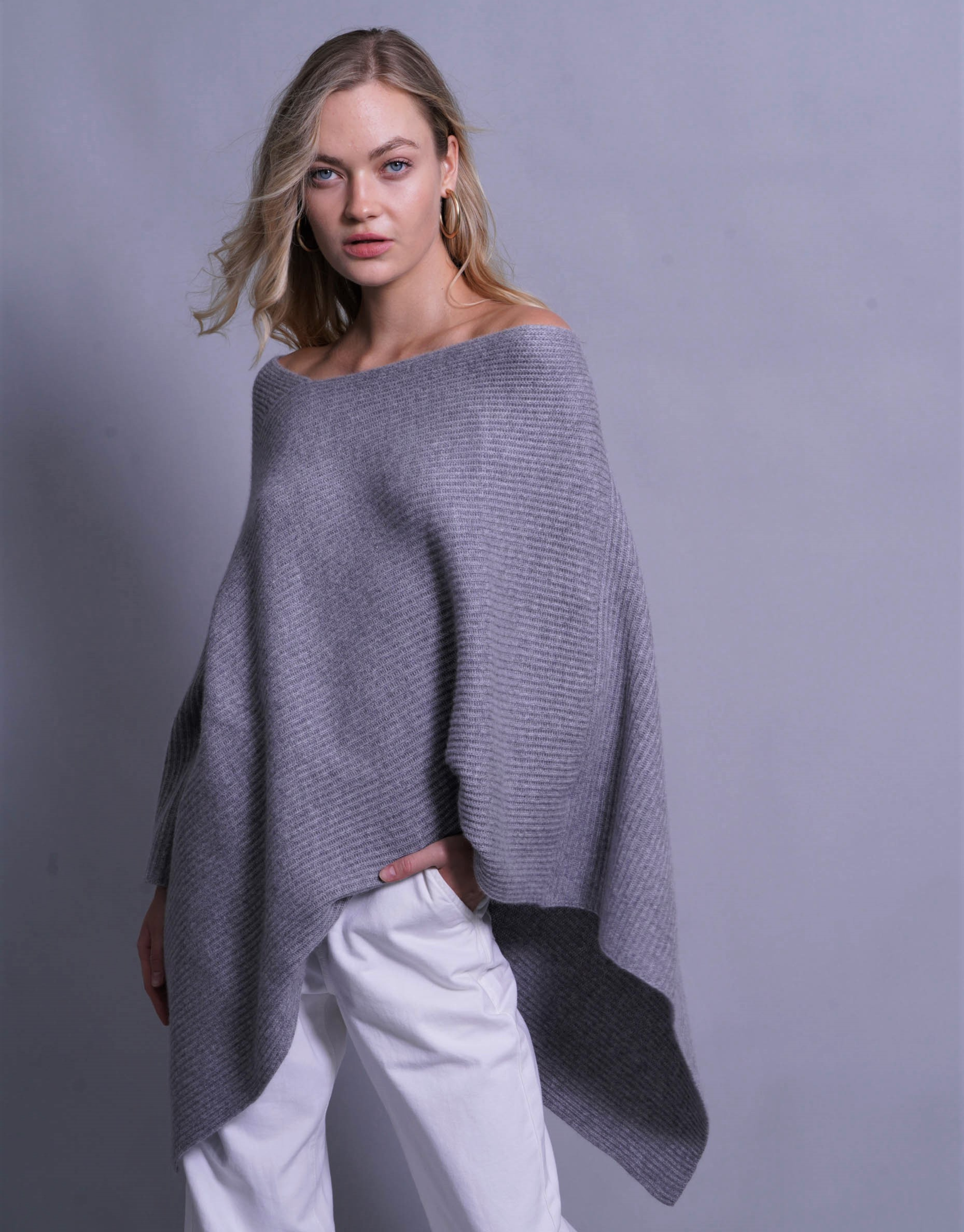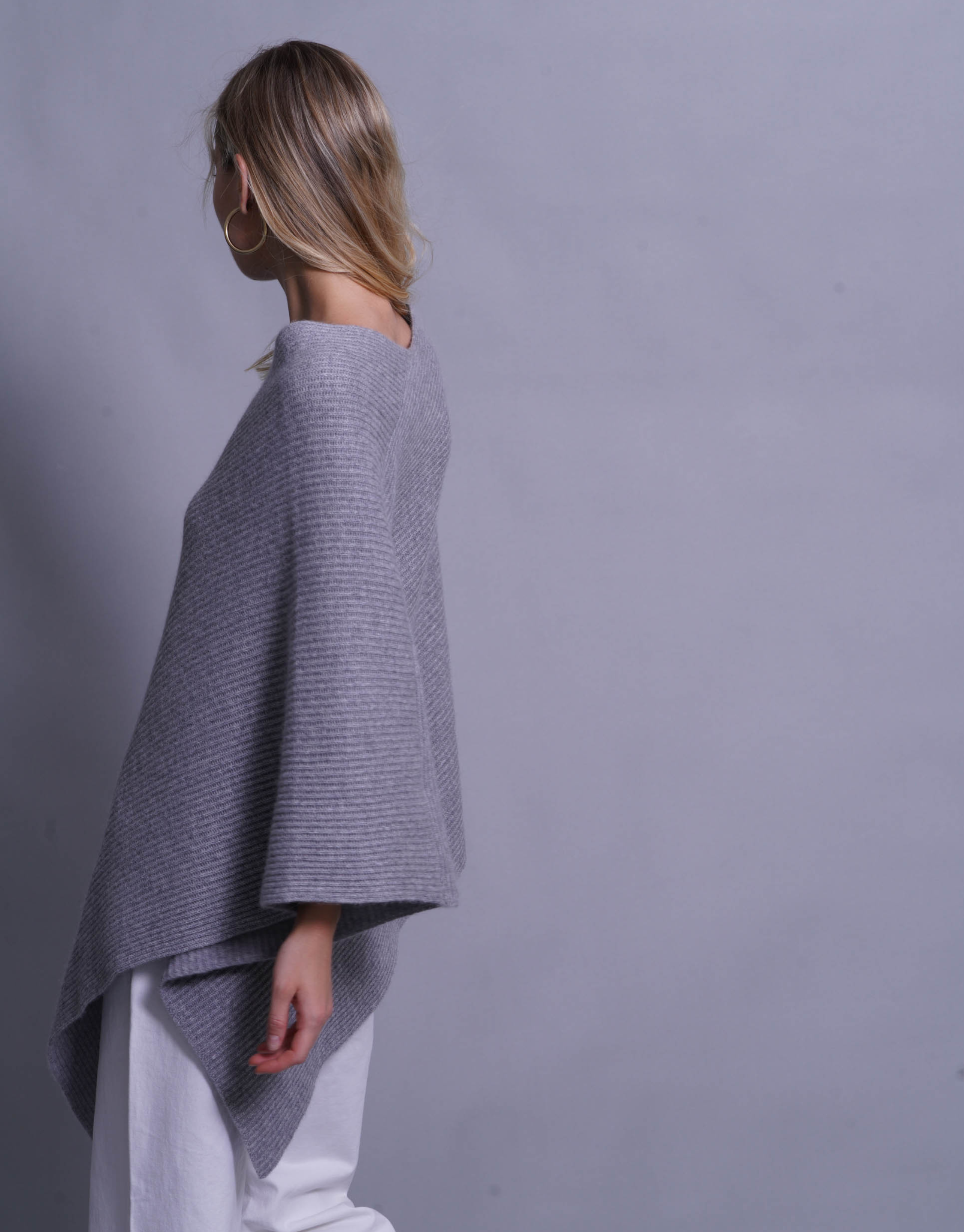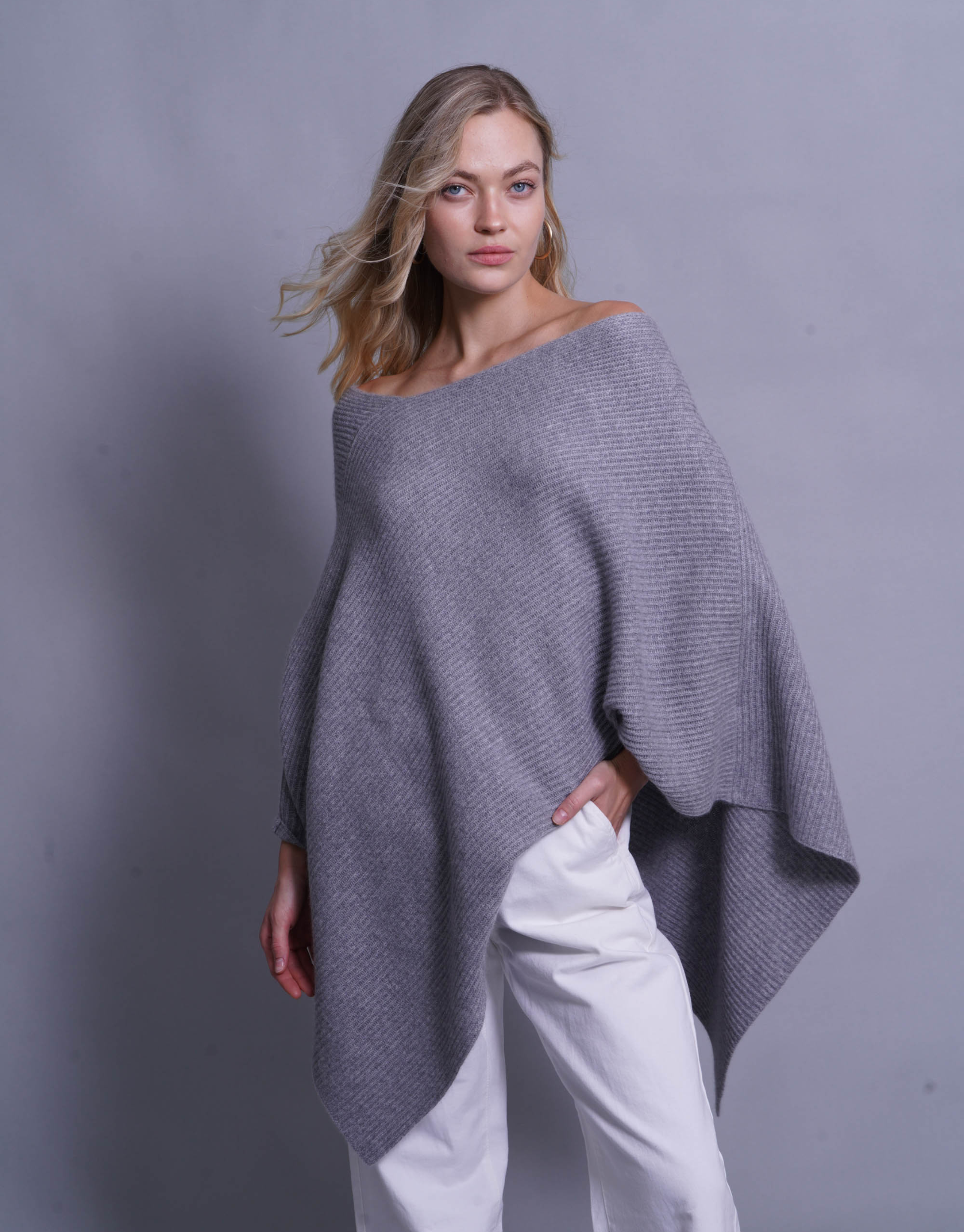 Thick Ribbed Poncho in Derby