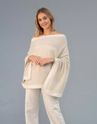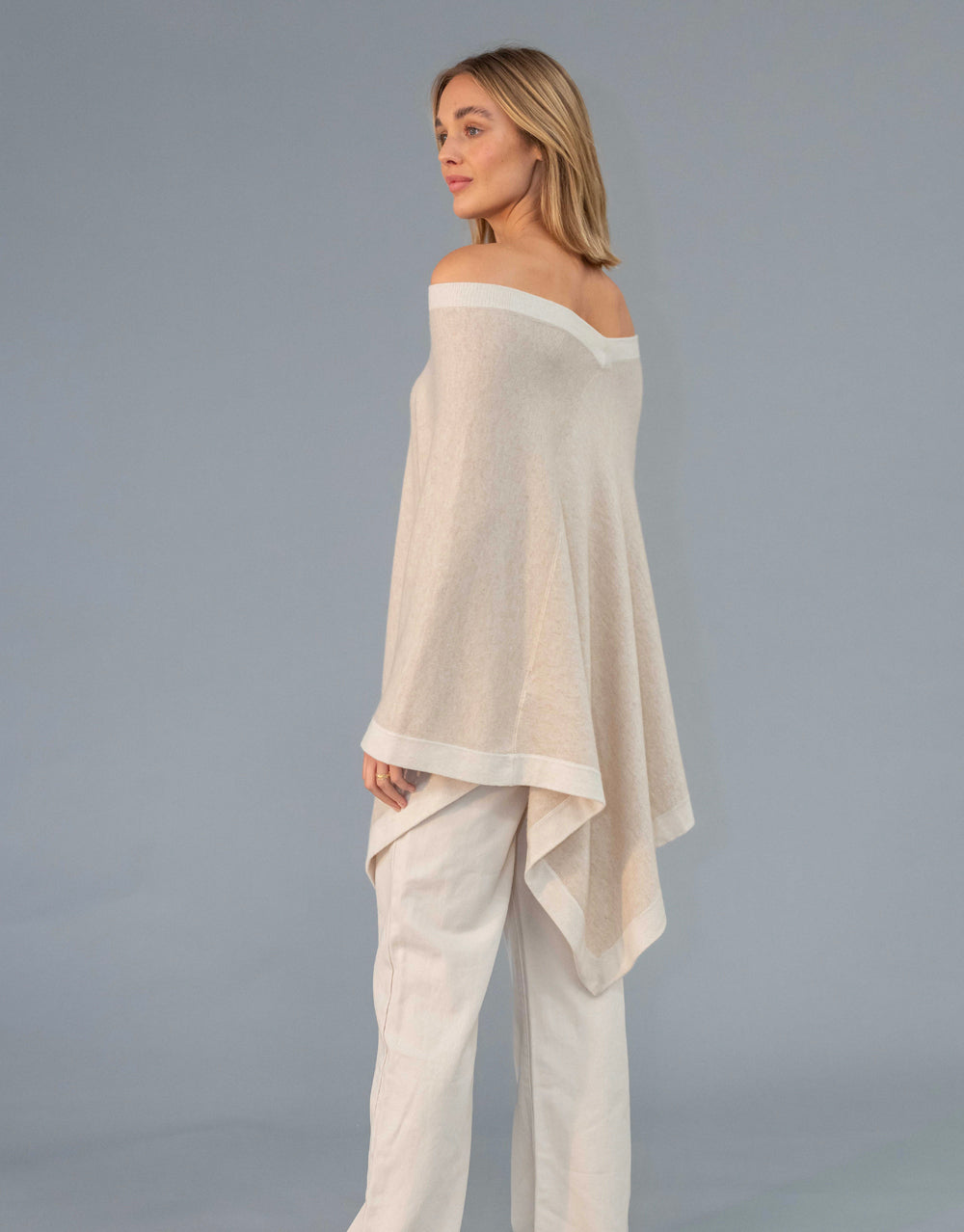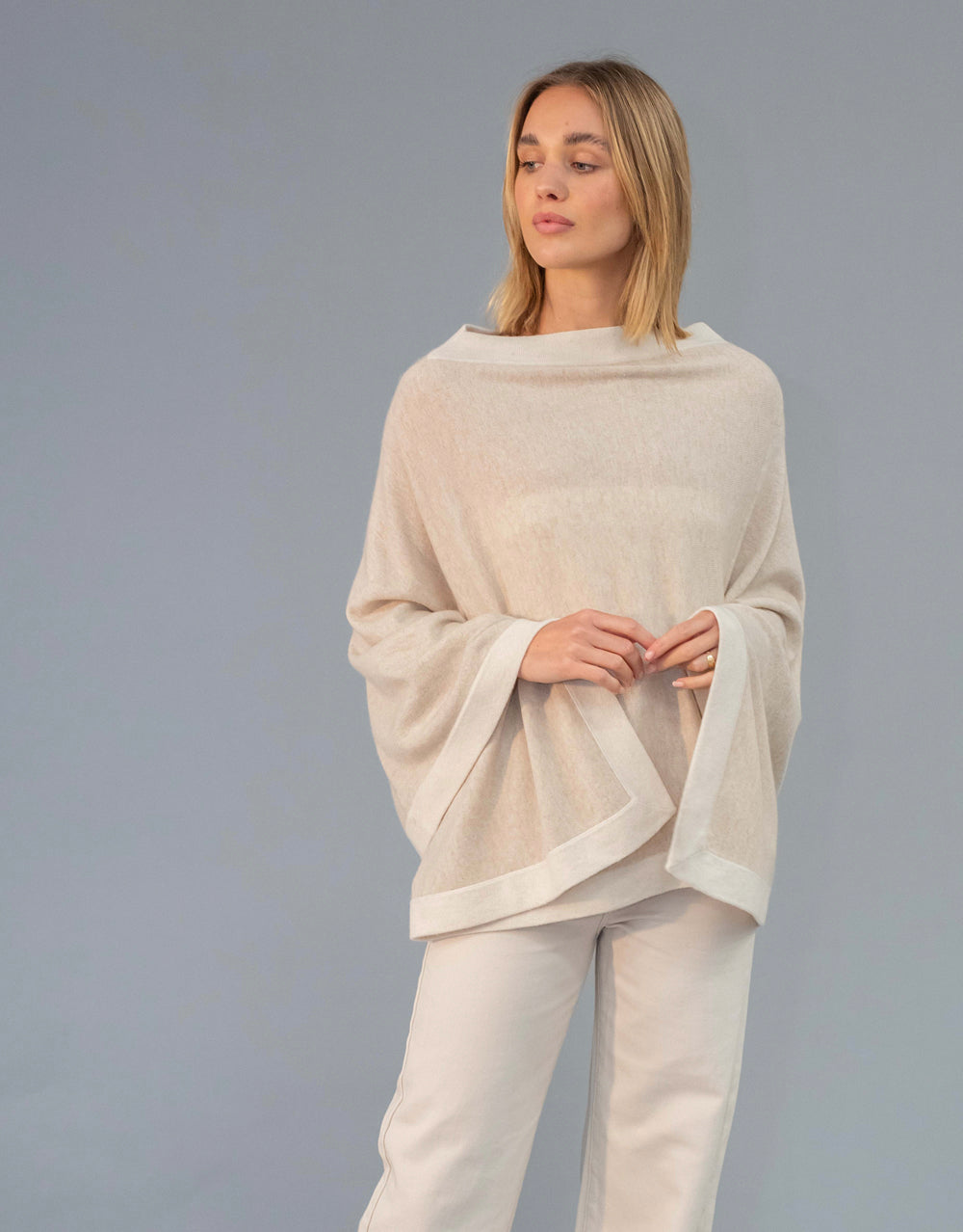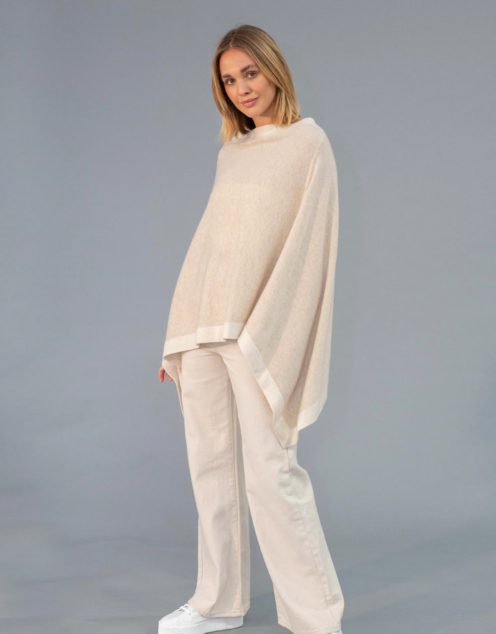 Our un-dyed collection features extra soft and premium quality yarns that are natural, eco friendly and sustainable. Throw this cashmere poncho over any outfit to keep you snug and stylish.