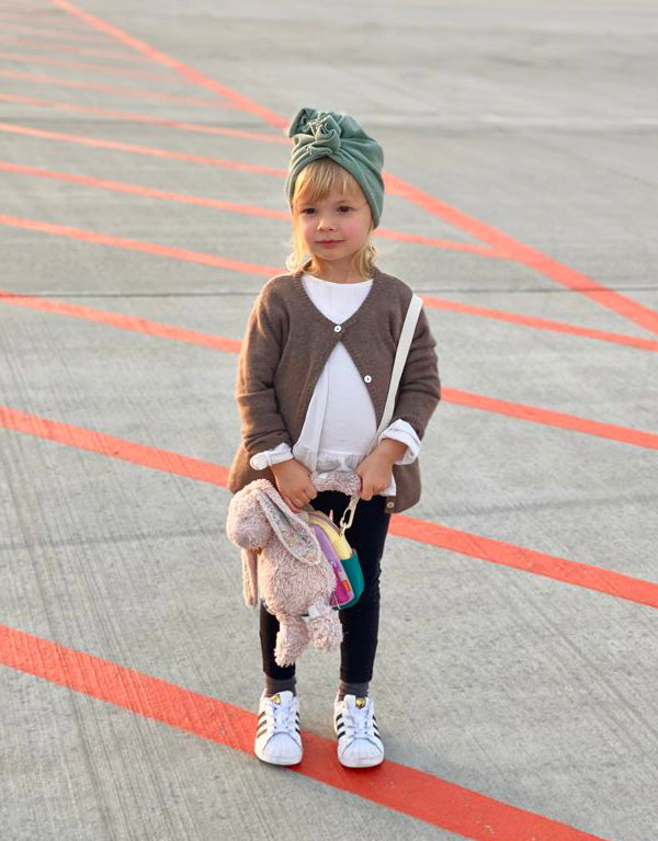 Classic Girls Crew Neck Cashmere Cardigan in Nut