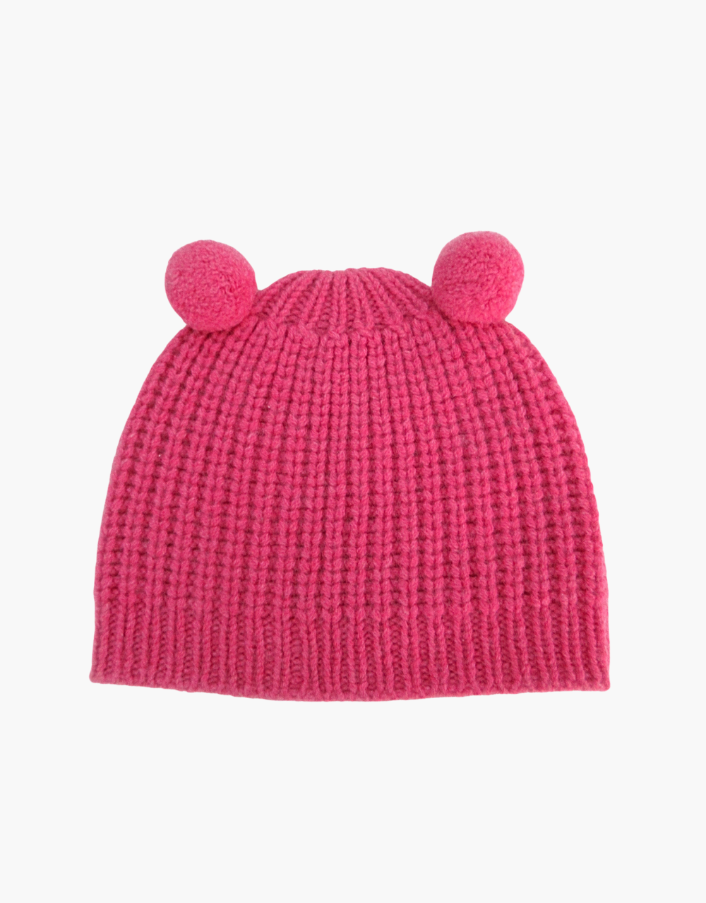 Little Cashmere Beanie with Pom Pom Ears in Peony