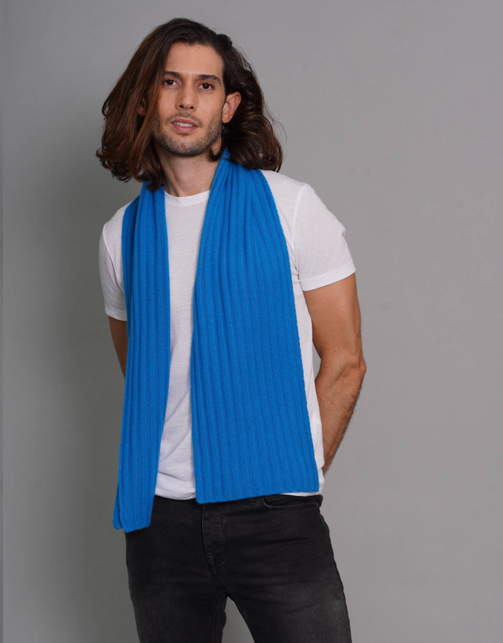 Loose knit 3x3 rib scarf, 4-ply. 100% cashmere. One size.