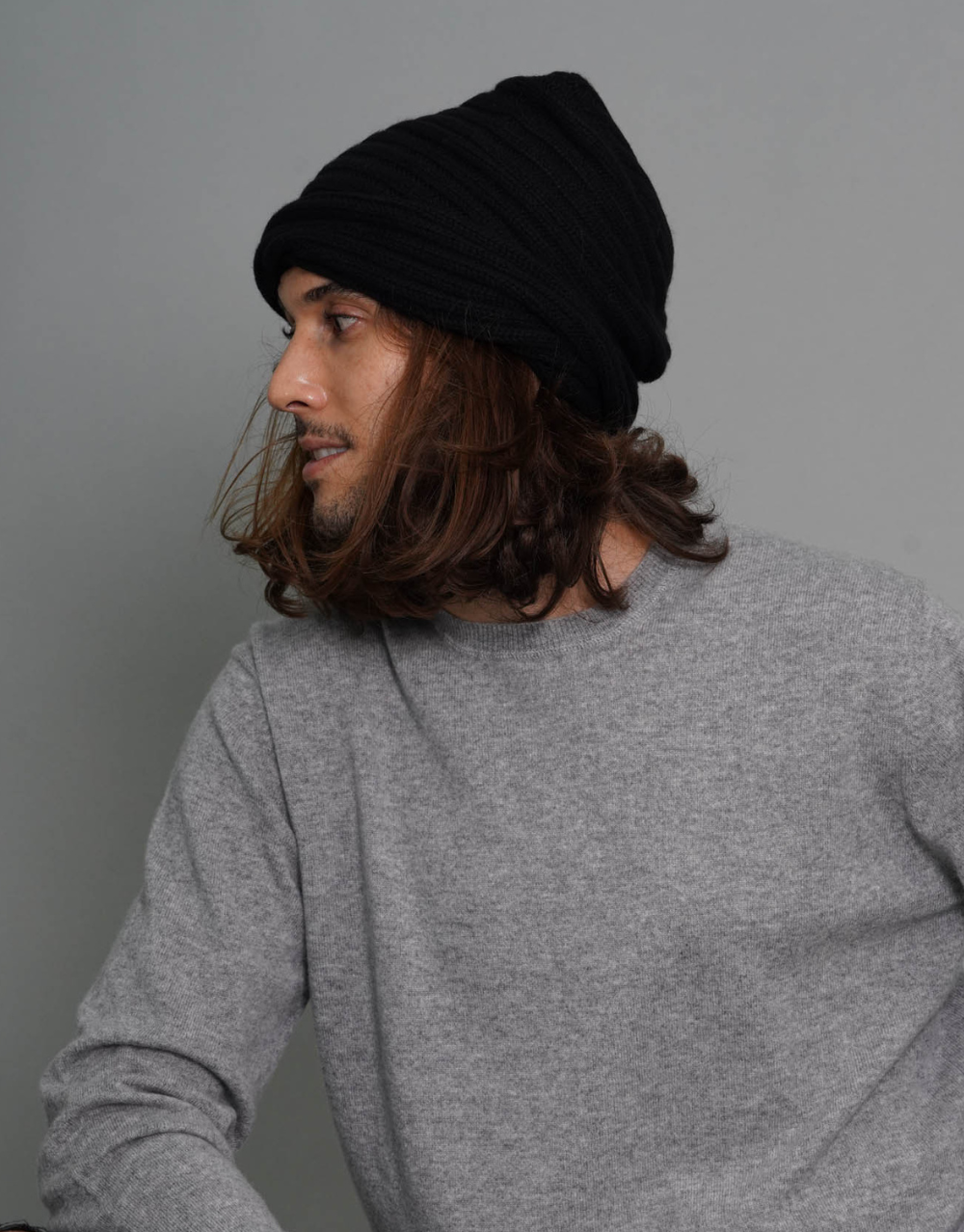 A thick, long tube rib cap 12-ply flat knit. 100% cashmere. One size.