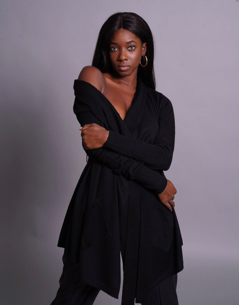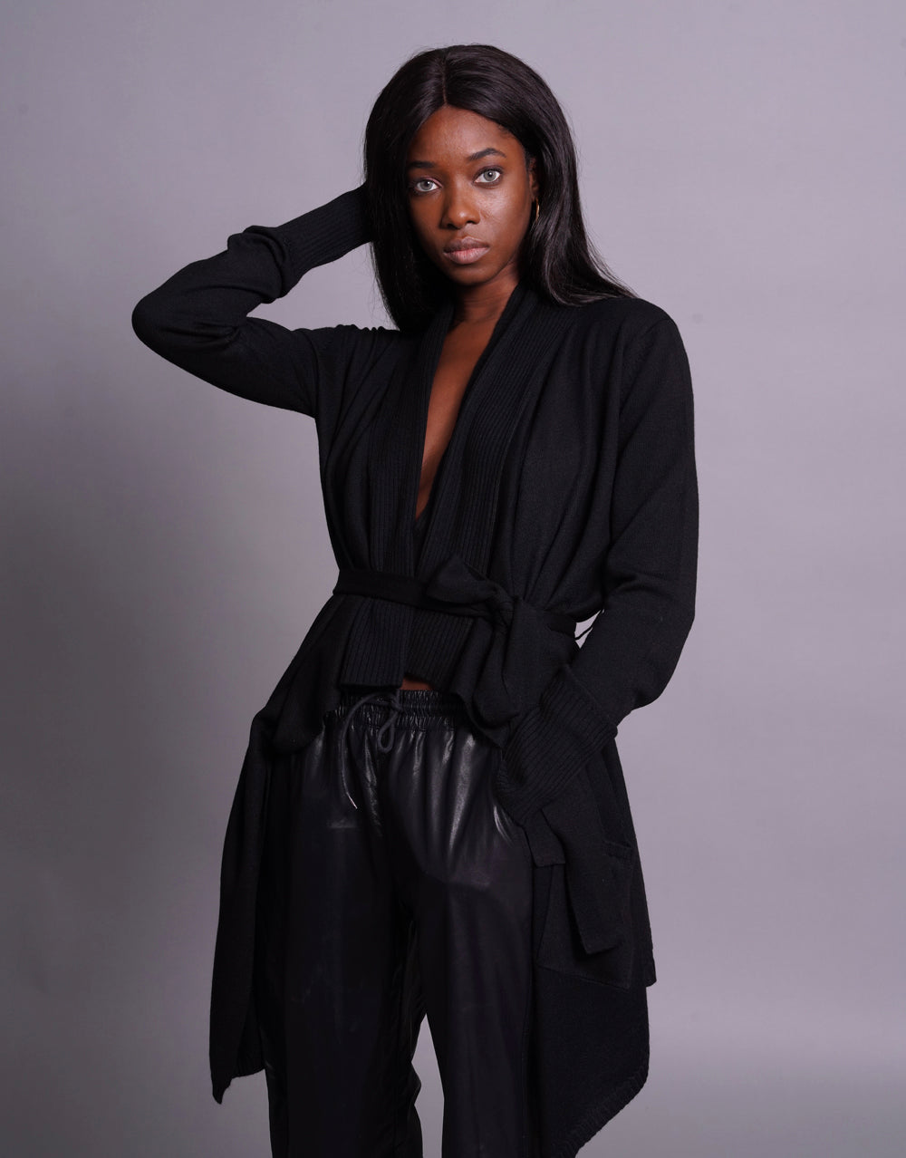 Wrap jacket with a belt, 2 slanted front pockets, long ribbed cuff, wide ribbed wrap collar. This versatile wrap jacket can be worn open or belt it up to accentuate for an hourglass figure. Style it up with your favourite jeans and t shirt.